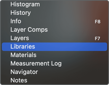 2. Select [Libraries] from the list to activate it.